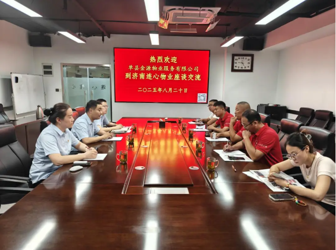 2025年8月20日下午,單縣金源物業(yè)服務(wù)有限公司經(jīng)理時(shí)海東等一行5人到濟(jì)南連心物業(yè)有限公司進(jìn)行工作交流。連心物業(yè)黨支部副書(shū)記、總經(jīng)理曹立等參加此次交流接待活動(dòng)。