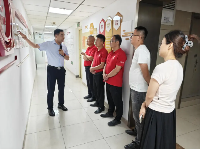黨支部副書(shū)記、總經(jīng)理曹立陪同金源物業(yè)一行參觀企業(yè)文化長(zhǎng)廊,并圍繞公司發(fā)展歷程、企業(yè)文化、黨建工作及所獲榮譽(yù)進(jìn)行交流。通過(guò)互動(dòng)交流,金源物業(yè)代表對(duì)連心物業(yè)企業(yè)文化、精細(xì)化管理體系與品牌化建設(shè)路徑有了更加直觀、深刻的認(rèn)識(shí)。