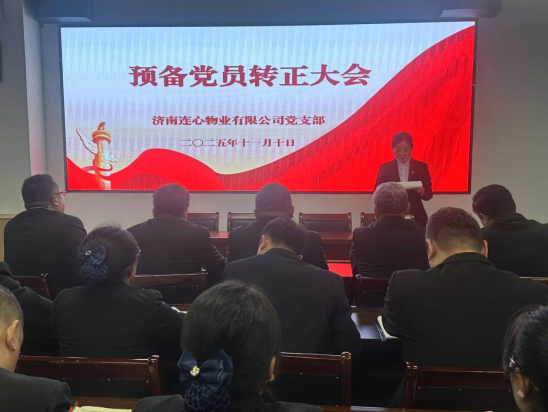 2025年11月10日下午,濟(jì)南連心物業(yè)有限公司黨支部在1701會(huì)議室召開(kāi)第四季度黨員大會(huì),公司全體黨員、入黨積極分子及遞交入黨申請(qǐng)書人員48人參加本次大會(huì)。學(xué)習(xí)黨的二十屆四中全會(huì)精神、審議預(yù)備黨員轉(zhuǎn)正事宜等兩項(xiàng)議程。