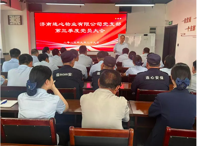 2025年9月29日下午,濟(jì)南連心物業(yè)有限公司黨支部在1701會(huì)議室召開第三季度黨員大會(huì),公司全體黨員、入黨積極分子及遞交入黨申請(qǐng)書人員48人參加本次大會(huì)。學(xué)習(xí)偉大抗戰(zhàn)精神、審議預(yù)備黨員轉(zhuǎn)正事宜等二個(gè)議程。